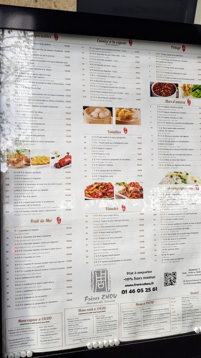 Frères Zhou Menu
